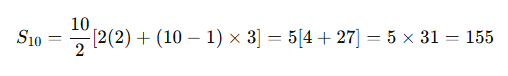 a=3,d=3,n=10a = 3, d = 3, n = 10a=3,d=3,n=10 a10=3+(10−1)×3=30a_{10} = 3 + (10 – 1) \times 3 = 30a10=3+(10−1)×3=30